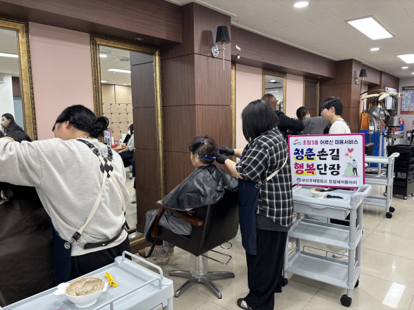 ºÎ»ê±¹Á¦¿µÈ°íµîÇб³´Â µ¿±¸ °ü³» ¾î¸£½Å Àå¼ö »çÁø ÃÔ¿µ µî Áö¿ª»çȸ¸¦ À§ÇØ Àç´É±âºÎ¸¦ ÅëÇÑ ºÀ»çȰµ¿À» ²ÙÁØÈ÷ ÁøÇàÇØ ¿ÔÀ¸¸ç, À̹ø ºÀ»çȰµ¿Àº ¾î¸£½ÅµéÀ» À§ÇØ ¿°»ö, ³×ÀÏÄÉ¾î ¹× ¸»¹þ ºÀ»ç¸¦ ÁøÇàÇß´Ù.