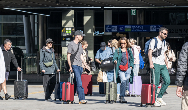 ºÎ»ê µ¿±¸ ºÎ»ê¿ª ¾Õ¿¡¼­ ¿Ü±¹ÀÎ ¿©Çà°´µéÀÌ Ä³¸®¾î¸¦ ²ø¸ç °É¾î°¡°í ÀÖ´Ù. ±¹Á¦½Å¹®DB
