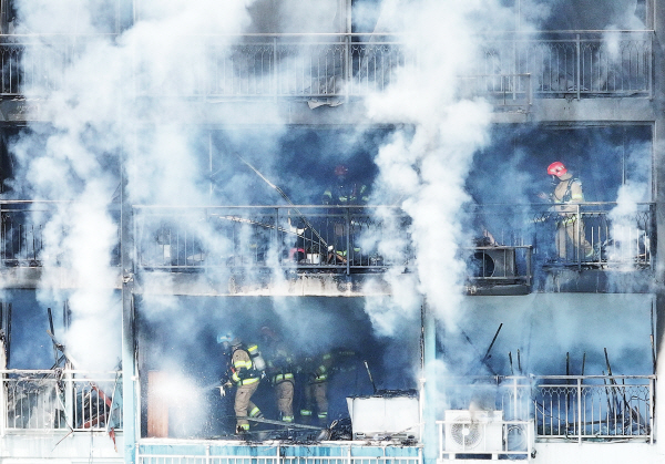 30ÀÏ È­Àç°¡ ¹ß»ýÇÑ °æ±âµµ Àǿսà ÇÑ ¾ÆÆÄÆ®¿¡¼­ ¼Ò¹æ°üµéÀÌ ºÐÁÖÇÏ°Ô ¿òÁ÷À̰í ÀÖ´Ù. ¿¬ÇÕ´º½º