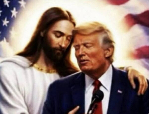 Æ®·³ÇÁ ´ëÅë·ÉÀº 15ÀÏ(ÇöÁö½Ã°£) Æ®·ç½º¼Ò¼È¿¡ ÀÌ °°Àº À̹ÌÁö¸¦ °øÀ¯ÇÏ¸ç ¡°±ÞÁø ÁÂÆÄ ±¤½ÅµµµéÀº À̰ÍÀ» ÁÁ¾ÆÇÏÁö ¾ÊÀ»Áöµµ ¸ð¸£Áö¸¸, ³ª´Â ²Ï ±¦Âú´Ù°í »ý°¢ÇÑ´Ù¡±°í Àû¾ú´Ù. ÀΰøÁö´É(AI)À¸·Î »ý¼ºµÈ °ÍÀ¸·Î ÃßÁ¤µÇ´Â ÀÌ À̹ÌÁö´Â ¿¹¼ö°¡ Æ®·³ÇÁ ´ëÅë·ÉÀ» °¨½Î ¾È°í ÀÖ´Â ¸ð½ÀÀε¥ ´«À» °¨Àº ä ¸Ó¸®¸¦ ¸Â´í µÎ »ç¶÷ µÚ·Î ¹Ì±¹ ±¹±â°¡ º¸ÀδÙ.