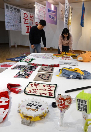 ¡®±¤ÀåÀÇ ¿ÀºêÁ¦¡¯¿¡¼­´Â ¹ÎÁÖÁÖÀǸ¦ ÁöŰ·Á°í ³ª¼± ¸¹Àº ½Ã¹ÎÀÌ °¢ÀÚÀÇ ¶æÀ» ¾Ë¸®·Á°í µé°í ³ª¿Â ´Ù¾çÇÑ ¹°Ç°ÀÌ Àü½ÃµÈ´Ù. °³Àΰú ´ÜüÀÇ ÁÖÀ塤¼Ò°³¸¦ ´ãÀº ±ê¹ß°ú ¼ÕÆÖ¸», ¼¼°èÀÎÀÇ ´«±æÀ» »ç·ÎÀâÀº ÀÀ¿øºÀ, ÀúÇ× ¸Þ½ÃÁö¸¦ °£¸íÇÏ°Ô ¾ÐÃàÇØ ´ãÀº ½ºÆ¼Ä¿, ½Ã¹Î ÀúÇ׿¡ °¨µ¿ ¹Þ¾Æ ¾´ ¼Õ ÆíÁö µîÀÌ´Ù. ¹ÎÁÖ°ø¿ø À̵¿ÀÏ °üÀåÀº ¡°ºÎ»ê ½Ã¹ÎÀÌ ±âÁõÇÑ 130¿© Á¡°ú ¼­¿ï ½Ä¹ÎÁö¿ª»ç¹Ú¹°°üÀÌ ¼öÁýÇÑ 90¿© Á¡À» º¼ ¼ö ÀÖ´Ù¡±¸ç ¡°½Ã¹Î ½Â¸®ÀÇ ±â·ÏÀ» ¿ª»çÀûÀ¸·Î °è½ÂÇÒ ´Ù¾çÇÑ ¹æ¹ýÀ» °í¹Î Áß¡±À̶ó°í ¸»Çß´Ù. Àü½Ã ±â°£ Ãß°¡ ±âÁõÀ» ¹Þ´Â´Ù. ´Ü¼øÇÑ Àü½Ã°¡ ¾Æ´Ñ ÀÌÀ¯´Ù.