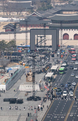 Áö³­ 17ÀÏ ¹æÅº¼Ò³â´ÜÀÇ ±¤È­¹® °ø¿¬À» ¾ÕµÐ ¼­¿ï Á¾·Î±¸ ±¤È­¹®±¤Àå¿¡¼­ °ø¿¬ Áغñ ÀÛ¾÷ÀÌ ÀÌ·ïÁö°í ÀÖ´Ù. ¿¬ÇÕ´º½º