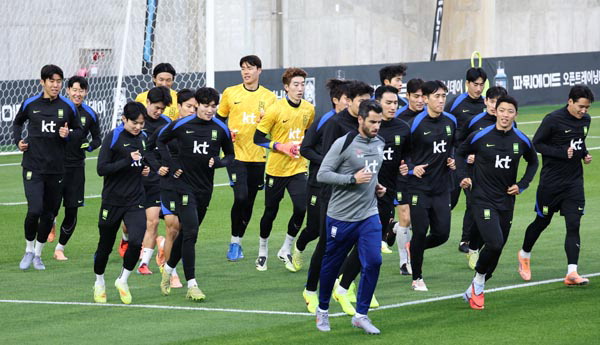 11ÀÏ Ãæ³² õ¾È ´ëÇѹα¹Ã౸Á¾ÇÕ¼¾ÅÍ¿¡¼­ Ã౸´ëÇ¥ÆÀ ¼±¼öµéÀÌ º»°ÝÀûÀÎ ÈÆ·Ã¿¡ ¾Õ¼­ ¸öÀ» Ç®°í ÀÖ´Ù. ¿¬ÇÕ´º½º