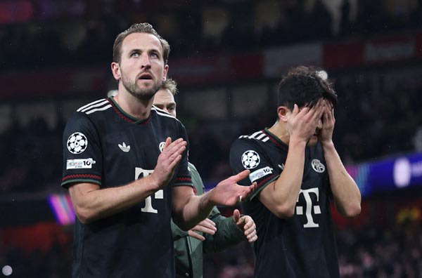 | 27ÀÏ ±è¹ÎÀç(¿À¸¥ÂÊ)°¡ UCL ¾Æ½º³ÎÀü ÆÐ¹è ÈÄ ¾ó±¼À» °¨½Î°í ÀÖ´Ù. ·ÎÀÌÅÍ ¿¬ÇÕ´º½º