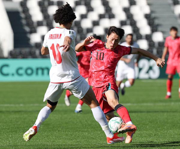 Çѱ¹Ã౸ÀÇ »õÇØ ù ±¹Á¦ ´ëȸ·Î ±â´ë¸¦ ¸ðÀº ¾Æ½Ã¾ÆÃ౸¿¬¸Í(AFC) 23¼¼ ÀÌÇÏ(U-23) ¾Æ½Ã¾ÈÄŠù °æ±â¿¡¼ À̹μºÈ£°¡ À̶õ°ú ºñ±â¸ç ¾Æ½¬¿î Ãâ¹ßÀ» Çß´Ù. ÃÖÀü¹æ ÅõÅé °»óÀ±(ÀüºÏ Çö´ë)°ú ±èÅ¿ø(īŻ·¹ µµ¾ß¸¶)ÀÌ ºÎ»óÀ¸·Î ½Ç·Á ³ª°¡´Â ¾ÇÀç±îÁö °ãÃÆ´Ù.