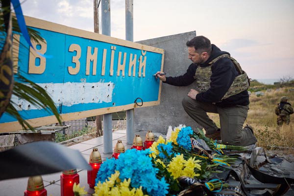 º¼·Îµð¹Ì¸£ Á©·»½ºÅ° ¿ìÅ©¶óÀ̳ª ´ëÅë·ÉÀÌ ÀüÀï 500Àϰ¸¦ ¸ÂÀº 8ÀÏ(ÇöÁö½Ã°£) ÈæÇØ ¹ì¼¶(Áî¹Ì´Ï¼¶)À» ¹æ¹®ÇØ ¸Þ½ÃÁö¸¦ ³²±â°í ÀÖ´Ù. ¿ìÅ©¶óÀ̳ª´Â Áö³ÇØ 6¿ù ·¯½Ã¾Æ·ÎºÎÅÍ Å»È¯ÇÑ ÀÌ ¼¶À» ÀúÇ×ÀÇ »ó¡À¸·Î ¿©±ä´Ù. ÀüÀï 500ÀÏÀ» ¸Â¾Æ ¿ìÅ©¶óÀ̳ª±ºÀº µµ³×Ã÷Å©ÁÖ ¹ÙÈ幫Ʈ µ¿¡¤³²ºÎ Àü¼±¿¡¼ °ø¼¼¸¦ À̾°í ÀÖ´Ù. ¿ìÅ©¶óÀ̳ª ´ëÅë·É½Ç Á¦°ø AFP ¿¬ÇÕ´º½º