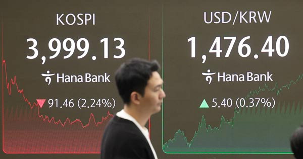 ÀΰøÁö´É(AI) »ê¾÷ °Åǰ ¿ì·Á¿Í ¹Ì±¹ °æÁ¦ÁöÇ¥ ¹ßÇ¥¸¦ ¾ÕµÐ °æ°è½É¸®¿¡ ´õÇØ Áß±¹ °æ±âµÐÈ ¿ì·Á±îÁö °ãÄ¡¸é¼ ÄÚ½ºÇǰ¡ ±Þ¶ô¼¼¸¦ ¸éÄ¡ ¸øÇß´Ù. 16ÀÏ ÄÚ½ºÇÇ´Â ÀüÀ庸´Ù 91.46Æ÷ÀÎÆ®(2.24%) ±Þ¶ôÇÑ 3999.13À¸·Î ÀåÀ» ¸¶ÃÆ´Ù. ÄÚ½º´ÚÀº 22.72Æ÷ÀÎÆ®(2.42%) ³»¸° 916.11·Î °Å·¡¸¦ Á¾·áÇß´Ù. ¿¬ÇÕ´º½º