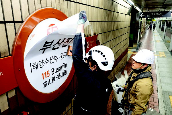 ÇØ¾ç¼ö»êºÎ°¡ ºÎ»êÀ¸·Î ÀÌÀüÇÏ¸é¼ µµ½Ãöµµ 1È£¼± ºÎ»êÁø¿ª ¿ª¸íºÎ±â°¡ ¡®µ¿±¸Ã»¡¯¿¡¼ ¡®Çؾç¼ö»êºÎ¡¤µ¿±¸Ã»¡¯À¸·Î º¯°æµÆ´Ù. 18ÀÏ ¿ÀÀü µ¿±¸ ºÎ»êµµ½Ãöµµ ºÎ»êÁø¿ª¿¡¼ ¿ª¸íÆÇ ±³Ã¼ÀÛ¾÷ÀÌ ÁøÇàµÇ°í ÀÖ´Ù. ÇØ¼öºÎ´Â 21ÀϱîÁö ÀÌ»ç ÀÛ¾÷À» ¸¶Ä¡°í ¿À´Â 23ÀÏ ÀÓ½Ãû»ç °³Ã»½ÄÀ» °³ÃÖÇÒ ¿¹Á¤ÀÌ´Ù.