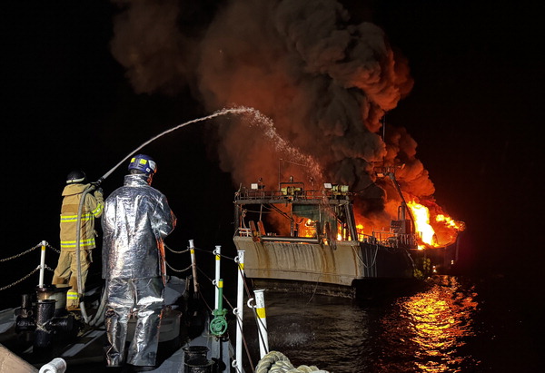 ºÎ»êÇØ¾ç°æÂû¼­´Â 24ÀÏ ¿ÀÀü 1½Ã²² ¿µµµ±¸ »ýµµ ÀÎ±Ù ÇØ»ó¿¡ ÀÖ´ø 42t±Þ ¾î¼±¿¡¼­ ºÒÀÌ ³µ´Ù°í ¹àÇû´Ù. ½Â¼±¿ø 6¸íÀº ÀαÙÀ» Áö³ª´ø ¾î¼±ÀÇ µµ¿òÀ¸·Î ¸ðµÎ ±¸Á¶µÆ´Ù. »çÁøÀº È­Àç ÁøÈ­¿¡ ³ª¼± ÇØ°æ. ºÎ»êÇØ¾ç°æÂû¼­ Á¦°ø
