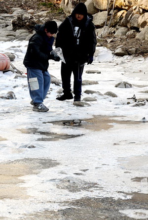 ºÎ»êÁö¿ª ÃÖÀú±â¿ÂÀÌ ¿µÇÏ 12.3µµ(¼­±¸ ±âÁØ)¸¦ ±â·ÏÇÑ 8ÀÏ ºÎ»ê µ¿·¡±¸ ¿Âõõ¿¡¼­ ¾î¸°À̵éÀÌ ¾óÀ½À» ±ú¸é¼­ ³î°í ÀÖ´Ù. 9ÀÏ ºÎ»ê ÃÖÀú±â¿ÂÀº ¿µÇÏ 5µµ·Î ¿¹º¸µÆ´Ù.