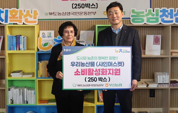 ³óÇùÁß¾Óȸ ºÎ»êº»ºÎ´Â Áö³­ 12ÀÏ »þÀθӽºÄÏ(4kg) 750¹Ú½º¸¦ ´ëÇѳëÀÎȸ ºÎ»êÁß±¸Áöȸ, ºÏ±¸Àå¾ÖÀÎÁ¾ÇÕº¹Áö°ü, »çÇÏ»ç¶ûä³ëÀκ¹Áö°ü ¾î¸£½Åµé¿¡°Ô °¢ 250¹Ú½º¾¿ Àü´ÞÇß´Ù.