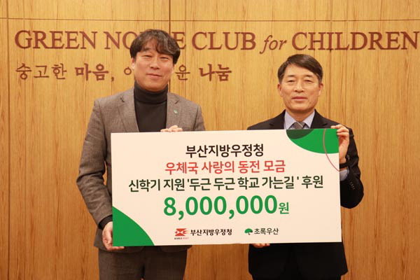 ºÎ»êÁö¹æ¿ìÁ¤Ã»Àº ºÎ»ê ¿ï»ê °æ³²Áö¿ª ¿ìü±¹¿¡ ¸ðÀÎ ¡®¿ìü±¹ »ç¶ûÀÇ µ¿Àü ¸ð±Ý¡¯ ¼º±Ý 800¸¸ ¿øÀ» ¾çÀ°½Ã¼³ ¾Æµ¿ÀÇ ½ÅÇбâ Áö¿øÀ» À§ÇØ ÃÊ·Ï¿ì»ê¿¡ Àü´ÞÇß´Ù°í 19ÀÏ ¹àÇû´Ù.