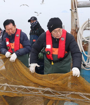 ´õºÒ¾î¹ÎÁÖ´ç Á¤Ã»·¡(¿ÞÂÊ) ´ëÇ¥¿Í ÀÎõ½ÃÀå Èĺ¸ÀÎ ¹ÚÂù´ë ÀÇ¿øÀÌ 11ÀÏ ÀÎõ °­È­±º ¼­°Ëµµ ¾Õ¹Ù´Ù Á¶¾÷ÇѰ輱 ±Ùó ±«¸®¾îÀå¿¡¼­ »õ¿ìÀâÀÌ Á¶¾÷ ÇöÀå üÇèÀ» Çϰí ÀÖ´Ù. ¿¬ÇÕ´º½º