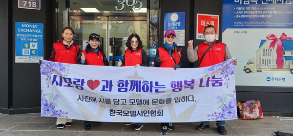 ¡®»çÁø¿¡ ½Ã¸¦ ´ã°í ¸ðµ¨¿¡ ¹®È­¸¦ ÀÔÈ÷´Ù¡¯¶ó´Â ½½·Î°ÇÀ» ³»°É°í Ȱµ¿ÇÏ´Â Çѱ¹¸ðµ¨½ÃÀÎÇùȸ ½Ã¸ð¶û ºÀ»ç´ÜÀº Áö³­ 21ÀÏ ¼­¸é Áêµð½º ÀþÀ½ÀÇ °Å¸®¿¡¼­ ¾²·¹±â Áݱâ¿Í û¼Ò µî ÀÚ¿øºÀ»çȰµ¿À» Çß´Ù.