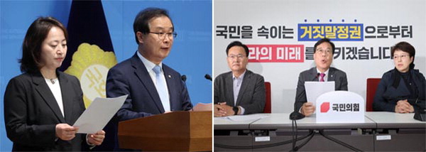´õºÒ¾î¹ÎÁÖ´ç Á¤Ä¡°ËÂû Á¶ÀÛ±â¼Ò´ëÀÀƯÀ§ À̰ÇÅ ÀÇ¿ø°ú ÀÌÁÖÈñ ÀÇ¿ø(¿ÞÂÊ)ÀÌ 9ÀÏ ¼­¿ï ¿©Àǵµ ±¹È¸ ¼ÒÅë°ü¿¡¼­ ´ëÀ嵿 ¹Î°£¾÷ÀÚÀÎ ³²¿í º¯È£»çÀÇ ¹ýÁ¤ Áõ¾ðÀ» °ø°³ÇÏ¸ç °ËÂûÀÇ Á¶ÀÛ±â¼Ò¸¦ ÁÖÀåÇϰí ÀÖ´Ù. ¿À¸¥ÂÊ »çÁøÀº ±¹¹ÎÀÇÈû ¼Û¾ð¼® ¿ø³»´ëÇ¥°¡ °°Àº ³¯ ¼­¿ï ¿©Àǵµ ±¹È¸¿¡¼­ °ËÂûÀÇ ´ëÀ嵿 °³¹ß ºñ¸® »ç°Ç Ç×¼Ò Æ÷±â °ü·Ã ±âÀÚ°£´ãȸ¸¦ °®´Â ¸ð½À. ¿¬ÇÕ´º½º