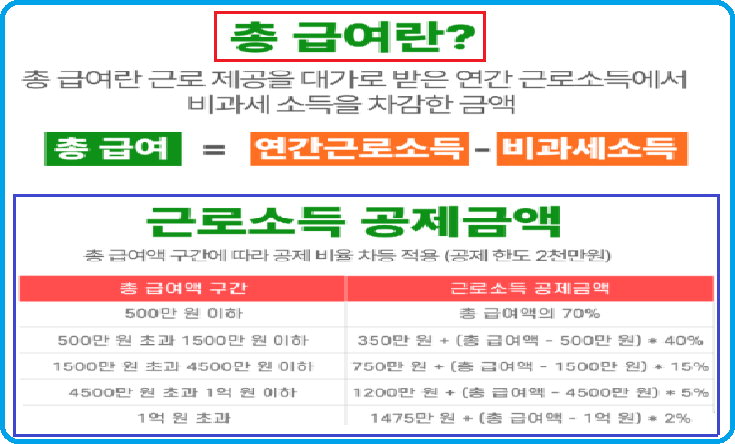¿¬¸»Á¤»ê¿¡¼­ ¸»ÇÏ´Â ÃÑ ±Þ¿© 500¸¸ ¿øÀÇ Àǹ̴ ¼¼Àü±Ý¾×À» ÀǹÌÇÏÁö¸¸ ¸ðµç ¼öÀÔÀ» ´Ù ÇÕÄ£ ±Ý¾×Àº ¾Æ´Ï´Ù. ÃÑ ±Þ¿©¶õ ¿¬°£¼Òµæ±Ý¾× ÃѾ׿¡¼­ ºñ°ú¼¼¼ÒµæÀ» Á¦¿ÜÇÑ ±Ý¾×ÀÌ´Ù. Æ÷ÇԵǴ ¼ÒµæÀº ±âº»±Þ, ¼ö´ç, »ó¿©±Ý(º¸³Ê½º), ½Ä´ë(¿ù 20¸¸ ¿ø ÃʰúºÐ) µî ¼¼±ÝÀ» ¸Å±â´Â ¸ðµç ±Þ¿©´Ù. ¿©±â¼­ Á¦¿ÜÇÏ´Â Ç׸ñÀÎ ºñ°ú¼¼¼ÒµæÀº ¿ù 20¸¸ ¿ø ÀÌÇÏÀÇ ½Ä´ë, ÀڳຸÀ°¼ö´ç, ½Çºñº¯»óÀû ±Þ¿© µîÀÌ´Ù. ÀÎÀû°øÁ¦ ±âÁØÀÌ ¿¬°£ ¼Òµæ±Ý¾×ÀÌ 100¸¸ ¿øÀε¥, ±Ù·Î¼Òµæ¸¸ ÀÖ´Â °æ¿ì 500¸¸ ¿øÀ̶ó´Â Àǹ̴ ÃÑ ±Þ¿©°¡ 500¸¸ÀÌÁö¸¸ ±¹°¡¿¡¼­ ÀÎÁ¤ÇØ ÁÖ´Â ±Ù·Î¼Òµæ°øÁ¦°¡ 400¸¸ ¿øÀ̱⠶§¹®ÀÌ´Ù.