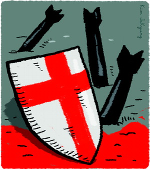 ÀÛ±ÝÀÇ Áßµ¿ »çŰ¡ ¡®Çö´ëÆÇ ½ÊÀÚ±ºÀüÀ¿¡ ºñÀ¯µÈ´Ù. ÇÇÆ® Çì±×¼¼½º ¹Ì ±¹¹æºÎ Àå°üÀº À̶õ ÀüÀïÀ» µÎ°í ¡°¿¹¼ö ±×¸®½ºµµÀÇ À̸§À¸·Î ¼öÇàµÇ´Â ¼ºÀü¡±À̶ó°í Ç¥ÇöÇß´Ù. ¹Ì±¹ÀÇ ÇÑ ¸Åü´Â ¿¤ºê¸®Áö Äݺñ ¹Ì ±¹¹æºÎ Á¤Ã¥´ã´ç Â÷°üÀÌ ±³È² ·¹¿À 14¼¼ÀÇ À̶õ ÀüÀï ºñÆÇ Á÷ÈÄ ÁÖ¹Ì ±³È²Ã» ´ë»ç¸¦ ºÒ·¯ ÁúÃ¥Çϸ鼭 ¾Æºñ´¨ À¯¼ö¸¦ ¾ð±ÞÇß´Ù°í º¸µµÇß´Ù. µµ³Îµå Æ®·³ÇÁ ¹Ì±¹ ´ëÅë·É ¿ª½Ã ¡°Çϳª´ÔÀº ¼±Çϱ⠶§¹®¿¡ ÀüÀï¿¡¼­ ¿ì¸® Æí¿¡ ¼­ ÀÖ´Ù¡±°í ¸»Çß´Ù. ÀüÀïÀÇ ¸íºÐÀ» Á¾±³·Î Æ÷ÀåÇϰڴٴ ¹ß»óÀÌ 21¼¼±â¿¡ ÅëÇÒ ¸® ¸¸¹«ÇÏ´Ù. Á¾±³¸¦ ¾Õ¼¼¿î ÀüÀïÀÎ ½ÊÀÚ±º¿øÁ¤ÀÇ ¸ô¶ôÀ̶ó´Â ±³ÈÆÀº ¿©ÀüÈ÷ À¯È¿ÇÏ´Ù.