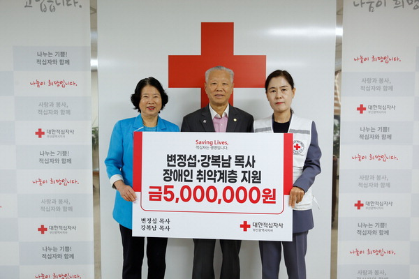 ºÎ»êº¹ÁöÁß¾Ó±³È¸ º¯Á¤¼· ¸ñ»ç(´çȸÀå)¿Í °º¹³² ¸ñ»ç ºÎºÎ°¡ ÃÖ±Ù ºÎ»êÁö¿ª Àå¾ÖÀÎ ¹× Ãë¾à°èÃþ Áö¿øÀ» À§ÇØ 500¸¸ ¿øÀÇ ¼º±ÝÀ» ´ëÇÑÀû½ÊÀÚ»ç ºÎ»êÁö»ç(ȸÀå ¼Á¤ÀÇ)¿¡ Àü´Þ(»çÁø)Çß´Ù°í 2ÀÏ ¹àÇû´Ù.