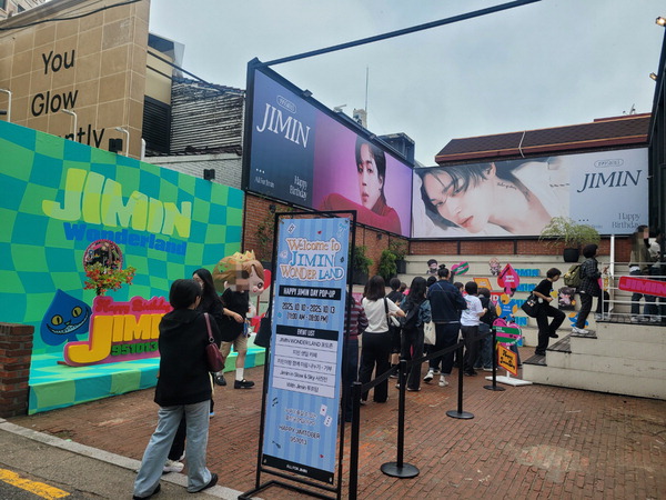 Áö¹ÎÀÇ ÆÒº£À̽º ¡®¿Ã Æ÷ Áö¹Î(All for Jimin)¡¯Àº Áö³ 10~13ÀÏ ¼¿ï ¾Ð±¸Á¤ ·Îµ¥¿À¿¡¼ »ýÀÏ ±â³ä ÆË¾÷ Çà»ç¿Í ÇÔ²² ±âºÎÄ·ÆäÀÎ(»çÁø)À» ÁøÇàÇß´Ù. ÇöÀå¿¡´Â ÆÒµéÀ» À§ÇÑ Æ÷ÅäÁ¸°ú Àü½Ã°¡ ¸¶·ÃµÆÀ¸¸ç Ű¿À½ºÅ©¿Í QRÄڵ带 ÅëÇØ ´©±¸³ª ¼Õ½±°Ô Âü¿©ÇÒ ¼ö ÀÖ´Â ±âºÎÀ̺¥Æ®°¡ ¿î¿µµÆ´Ù.