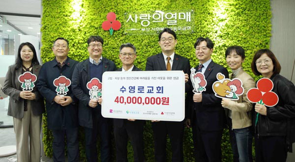 ºÎ»ê»çȸº¹Áö°øµ¿¸ð±Ýȸ(ȸÀå À̼öÅ¡¤ºÎ»ê»ç¶ûÀÇ¿­¸Å)´Â Áö³­ 6ÀÏ ¼ö¿µ·Î±³È¸(´ãÀÓ¸ñ»ç À̱ÔÇö)°¡ Á¤½Å°Ç°­ Ãë¾à°èÃþ Áö¿øÀ» À§ÇÑ ¼º±Ý 4000¸¸ ¿ø(»çÁø)À» ÀüÇØ¿Ô´Ù°í 10ÀÏ ¹àÇû´Ù.