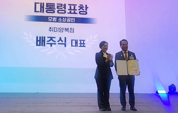 ºÎ»êÀÇ ¸ÂÃã¾çº¹ Àü¹®Á¡ Ãë¹ÌÅ×ÀÏ·¯ ¹èÁÖ½Ä ´ëÇ¥°¡ ±¹°¡»ê¾÷¿¡ ±â¿©ÇÑ °ø·Î¸¦ ÀÎÁ¤¹Þ¾Æ ¡®2025 Çѱ¹¿ì¼ö¼Ò»ó°øÀÎ ´ëÅë·É»ó¡¯(»çÁø)À» ¼ö»óÇß´Ù.