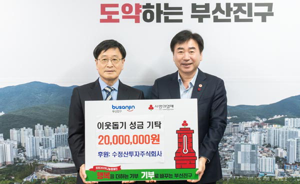 ¼öÁ¤»êÅõÀÚ¢ß(´ëÇ¥ÀÌ»ç ±èÈ£À±)´Â Áö³ 4ÀÏ ºÎ»êÁø±¸Ã»(±¸Ã»Àå ±è¿µ¿í)À» ¹æ¹®ÇØ ÀÌ¿ôµ½±â ¼º±Ý 2000¸¸ ¿øÀ» Àü´Þ(»çÁø)Çß´Ù.