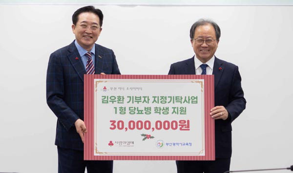 ºÎ»ê»çȸº¹Áö°øµ¿¸ð±Ýȸ(ȸÀå À̼öÅ¡¤ºÎ»ê»ç¶ûÀÇ¿¸Å)´Â Áö³ 17ÀÏ ºÎ»ê±¤¿ª½Ã±³À°Ã»¿¡¼ ±è¿ìȯ(´ëÇåÇÁ¸®ÅØ¢ß °í¹®) ±âºÎÀÚÀÇ ¼º±Ý 3000¸¸ ¿øÀ» Àü´Þ(»çÁø)Çß´Ù°í 22ÀÏ ¹àÇû´Ù. Àü´Þ½Ä¿¡´Â ºÎ»ê±¤¿ª½Ã±³À°Ã» ±è¼®ÁØ ±³À°°¨, ºÎ»ê»ç¶ûÀÇ¿¸Å À̼öÅ ȸÀåÀÌ Âü¼®Çß´Ù.