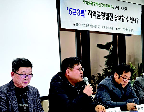 Áö¿ª¼Ò¸ê À§±â¿Í Áö¿ªºÒ±ÕÇü¹ßÀü ¹®Á¦ ÇØ¹ýÀ» Á¦½ÃÇÏ°í ´ë¾ÈÀû Áö¿ª¹ßÀü Àü·«À» Á¦½ÃÇØ ¿Â Áö¿ª¼øÈ¯°æÁ¦Àü±¹³×Æ®¿öÅ©°¡ Áö³ 4ÀÏ ¿ÀÈÄ ºÎ»êÁø±¸ ¹ç°³¸¶À»¼¾ÅÍ¿¡¼ ¡®5±Ø 3Ư, Áö¿ª±ÕÇü¹ßÀü ´ãº¸ÇÒ ¼ö ÀÖ³ª¡¯¸¦ ÁÖÁ¦·Î Åä·Ðȸ(»çÁø)¸¦ ¿¿´´Ù.