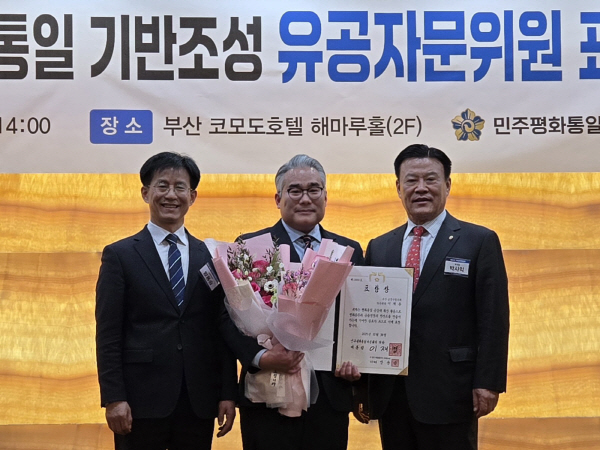 ºÎ»ê ±ÝÁ¤±¸ÀÇȸ ÀÌÀç¿ë ÀÇ¿øÀÌ ¹ÎÁÖÆòÈ­ÅëÀÏÀÚ¹®È¸ÀÇ ÀÇÀå ǥâÀ» ¼ö»óÇß´Ù.