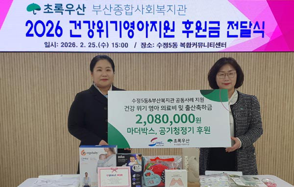 ÃÊ·Ï¿ì»ê ºÎ»êÁ¾ÇÕ»çȸº¹Áö°üÀº Áö³´Þ 25ÀÏ ¼öÁ¤5µ¿°ú ¡®°Ç°À§±â ¿µ¾Æ Áö¿ø»ç¾÷ ¼º±Ý Àü´Þ½Ä¡¯(»çÁø)À» ¿°í ÇØ´ç °¡Á¤¿¡ ÀÇ·áºñ¿Í ¾çÀ° Áö¿ø±ÝÀ» Àü´ÞÇϱâ·Î Çß´Ù. Áö¿ø ´ë»óÀº ±âÃÊ»ýȰ¼ö±Þ °¡Á¤ÀÇ ¿µ¾Æ·Î Áö¼ÓÀûÀÎ °Ç° °ü¸®°¡ ÇÊ¿äÇÑ »óȲÀÌ´Ù.
