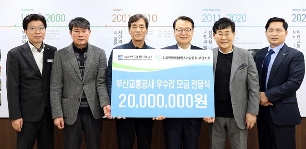 ºÎ»ê±³Åë°ø»ç ÀÓÁ÷¿øÀÌ ±Þ¿© ¿ì¼ö¸® ¸ð±ÝÀ¸·Î ¸¶·ÃÇÑ ¼º±Ý 2000¸¸ ¿øÀ» ¼Ò¾ÆÃ»¼Ò³â¾Ï ȯ¾Æ Ä¡·á Áö¿øÀ» À§ÇØ ±âºÎÇß´Ù. ºÎ»ê±³Åë°ø»ç´Â Áö³ 11ÀÏ º»»ç 7Ãþ Á¢°ß½Ç¿¡¼ ¿¸° ¡®±Þ¿© ¿ì¼ö¸® ¸ð±Ý¾× ±âŹ Çà»ç¡¯(»çÁø)¿¡¼ ¼º±Ý 2000¸¸ ¿øÀ» Çѱ¹¹éÇ÷º´¼Ò¾Æ¾ÏÇùȸ ºÎ»êÁöȸ¿¡ Àü´ÞÇß´Ù°í 17ÀÏ ¹àÇû´Ù.