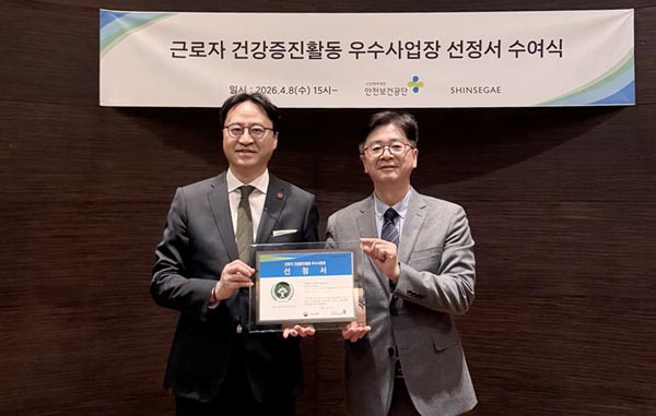 Çѱ¹»ê¾÷¾ÈÀüº¸°Ç°ø´Ü ºÎ»ê±¤¿ªº»ºÎ´Â Áö³­ 8ÀÏ ½Å¼¼°è ¼¾ÅÒ½ÃÆ¼Á¡À» ¡®±Ù·ÎÀÚ °Ç°­ÁõÁø ¿ì¼ö»ç¾÷À塯À¸·Î ¼±Á¤ÇÏ°í ¼±Á¤¼­¸¦ Àü´Þ(»çÁø)Çß´Ù. À̹ø ¼±Á¤Àº ³ë»ç°¡ ±Ù·ÎÀÚ °Ç°­ÁõÁø Ȱµ¿À» ÀÚÀ²Àû ü°èÀûÀ¸·Î ÃßÁøÇÏ°í »ç¾÷Àå ³» °Ç°­ÇÑ ±Ù¹«È¯°æ Á¶¼º¿¡ ±â¿©ÇÑ Á¡À» Æò°¡ÇÑ °á°ú´Ù.