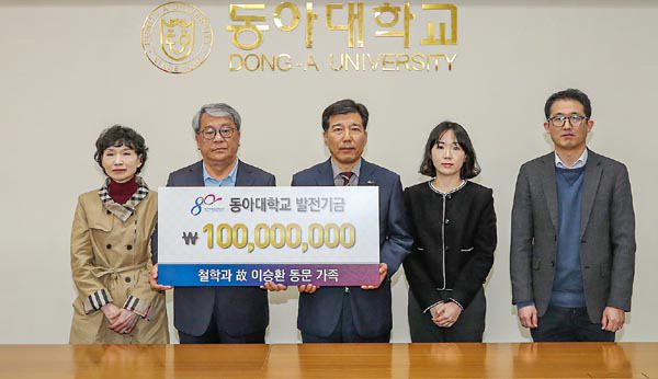 µ¿¾Æ´ëÇб³´Â °í À̽Âȯ µ¿¹®ÀÇ À¯°¡Á·ÀÌ ¡®À̽Âȯ ÀåÇбݡ¯ ¸í¸ñÀ¸·Î ¹ßÀü±â±Ý 1¾ï ¿øÀ» ±âŹ(»çÁø)Çß´Ù°í 16ÀÏ ¹àÇû´Ù. Áö³ 15ÀÏ ½ÂÇÐÄ·ÆÛ½º ´ëÇк»ºÎ ´ëȸÀǽǿ¡¼ ¿¸° Àü´Þ½Ä¿¡´Â ºÎÄ£ À̸í±Ù ¾¾¿Í ¸ðÄ£ õ¼÷Èñ ¾¾, ¿©µ¿»ý ÀÌÇý¿µ ¾¾ µî À¯°¡Á·ÀÌ Âü¼®ÇØ °íÀÎÀ» ±â¸®´Â ¶æÀ» ÀüÇß´Ù. Çб³ Ãø¿¡¼´Â ÀÌÇØ¿ì ÃÑÀåÀ» ºñ·ÔÇÑ ÁÖ¿ä º¸Á÷ÀÚ¿Í ±³¼öµéÀÌ ÀÚ¸®ÇØ °¨»çÀÇ ¸¶À½À» ÀüÇß´Ù.