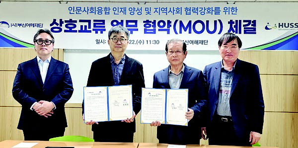 ©ÅºÎ»ê¿©ÇØÀç´ÜÀº Áö³­ 22ÀÏ ±¹¸³ºÎ°æ´ë Æ÷¿ë»çȸ»ç¾÷´Ü(HUSS¡¤´ÜÀå Á¶¼¼Çö)°ú Áö¿ª»çȸ ¹ßÀü ¹× Àι®»çȸ ±â¹Ý À¶ÇÕÇü ÀÎÀç ¾ç¼ºÀ» À§ÇÑ ¾÷¹«Çù¾à(»çÁø)À» ü°áÇß´Ù. Çù¾à½Ä¿¡´Â ±¹¸³ºÎ°æ´ë Á¶¼¼Çö Æ÷¿ë»çȸ»ç¾÷´ÜÀå°ú ÀÌ»ó¿ø ±³¼ö, ºÎ»ê¿©ÇØÀç´Ü ÀÌ¿ëÈì ÀÌ»çÀå, ³²¼Û¿ì À̼ø½ÅÇб³Àå µî µÎ ±â°ü ÁÖ¿ä °ü°èÀÚ°¡ Âü¼®Çß´Ù.
