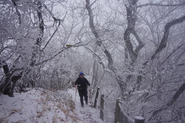 ¿µºÀ±îÁö ÇØ¹ß 1000£í°¡ Èǽ ³Ñ´Â ´É¼±±æÀ» Ÿ´Ù º¸´Ï °ÃßÀ§ ¼Ó¿¡ ¸¸µé¾îÁø »ó°í´ë ÅͳÎÀ» ¸¸³µ´Ù. ¹Ù¶÷ÀÌ ¾ó¸¶³ª °Å¼¾Áö ³ª¹«¿¡ ¾û°Ü ºÙÀº »ó°í´ë°¡ ¶³¾îÁ® ¹è³¶°ú µî¦À» ÈÄ·ÁÃÆ´Ù. ¿Ï¸¸ÇÏ´ø ´É¼±Àº »ì¦ ¿À¸£¸·À¸·Î À̾îÁø´Ù. ÁÖÈê»ê ÁÖºÀ¿¡¼ ¾à 40ºÐÀÌ¸é ¿µºÀ¡¤Á¦ 2°ü¹® °¥¸²±æ¿¡ ´ê´Â´Ù. ÁÖÈê»ê ¿µºÀÀº ¿À¸¥ÂÊÀ̸ç 30£íÂë ¶³¾îÁ³´Ù. ¿µºÀ¿¡µµ Á¤»ó¼®ÀÌ ÀÖÀ¸¸ç, ³ª¹«¿¡ °¡·Á Á¶¸ÁÀº ¾ø´Ù. Á÷ÁøÇÏ¸é ºÎºÀÀ¸·Î ÇâÇϳª »êºÒÅëÁ¦±â°£(11¿ù 30ÀÏ~5¿ù 15ÀÏ)¿¡´Â ÀÔ»êÀÌ ÅëÁ¦µÅ »êÇàÇÒ ¼ö ¾ø´Ù. ÇÏ»êÀº Á÷Àü °¥¸²±æ¿¡¼ ¿À¸¥ÂÊ 2°ü¹®À¸·Î ³»·Á°£´Ù.