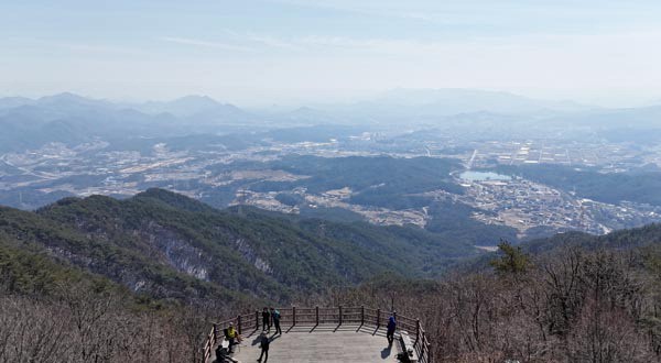 ¡®A-4¡¯ ÆÖ¸» °¥¸²±æ¿¡¼­ ¾à 35ºÐ ³²ÁþÀÌ¸é µ¦ °è´ÜÀ» ¿Ã¶ó ¿îµ¿À常 ÇÑ ¿ëµÎ»ê Á¤»ó¿¡ ¼±´Ù. »ï°¢Á¡°ú Á¤»ó¼®, Çï±âÀåÀÌ ÀÖ´Ù. ³²ÂÊÀ¸·Î µ¦ Àü¸Á´ë°¡ ÀÖ¾î Á¶¸ÁÀÌ ½Ã¿øÇÏ°Ô ¿­¸°´Ù. ´ä»ç ¶§ ¹Ú¹«°¡ ½ÉÇØ ¹ß¾Æ·¡ ÀǸ²Áö¿Í Á¦Ãµ ½Ã³»¿Í ±× µÚ¸¦ µÎ¸¥ ÀÛ¾à»ê µ¿»ê ±Ý¼ö»ê°ú ¿ÞÂÊÀ¸·Î È£¸í»ê °©»ê °¡Ã¢»ê¸¸ ´«¿¡ µé¾î¿Ô´Ù. ¸Ö¸® ¹éµÎ´ë°£ ´É¼±ÀÎ ¼Ò¹é»ê°ú ¿À¸¥ÂÊ ¿ù¾Ç»ê µîÀº À±°û¸¸ Èñ¹ÌÇß´Ù. ºÏ¼­ÂÊÀº ¿ëµÎ»ê¿¡¼­ ¿¬°áµÈ °¨¾Ç»ê µÚ·Î ¸Ö¸® Ä¡¾Ç»êµµ °¡´ÆÀÌ µÈ´Ù.