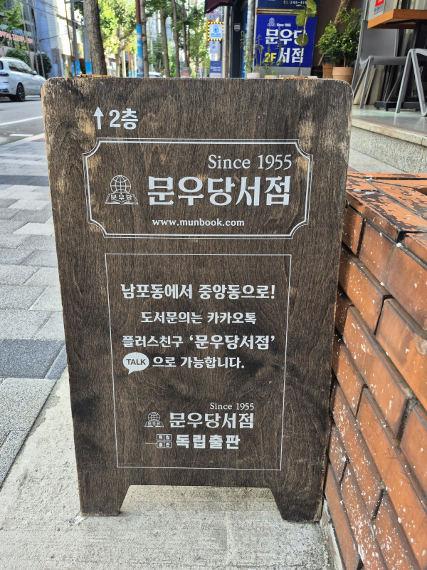 ºÎ»ê Áß±¸ Áß¾Óµ¿ °ñ¸ñ¿¡ 70³â ¿ª»ç¸¦ °£Á÷ÇÑ ¹®¿ì´ç¼­Á¡ÀÌ ÀÖ´Ù. ¹®¿ì´ç¼­Á¡Àº 1955³â µ¿±¸ ¹üÀϵ¿¿¡¼­ ¸ÅÀåÀ» ¿¬ÈÄ Áß±¸ ³²Æ÷µ¿À¸·Î ÀÌÀüÇϰí, Áß¾Óµ¿À¸·Î ´Ù½Ã ÀÌÀüÇß´Ù. ÇѶ§ Àü±¹¿¡¼­ ±â¼ú ¼­ÀûÀ» °¡Àå ¸¹ÀÌ º¸À¯Çß´ø ¼­Á¡ÀÌÀÚ, ºÎ»ê ½Ã¹ÎÀ̶ó¸é ´©±¸³ª ÇÑ ¹øÂë ¾à¼Ó Àå¼Ò·Î »ï¾Ò´ø °÷ÀÌ´Ù. Áö±Ýó·³ Ä¿ÇÇÁ¡ÀÌ ¸¹Áö ¾Ê¾Ò´ø ´ç½Ã, ¹®¿ì´çÀº Ä£±¸¿Í ¿¬ÀεéÀÇ ¸¸³²ÀÇ Àå¼Ò¿´°í, Ã¥À» ÀÐÀ¸¸ç ´©±º°¡¸¦ ±â´Ù¸®´Â ³¶¸¸ÀÌ °¡µæÇÑ °÷À̾ú´Ù.