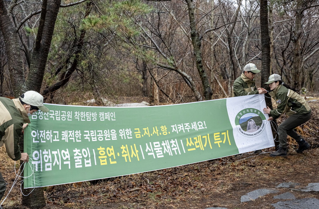 2ÀÏ ±ÝÁ¤±¸ ±ÝÁ¤»ê±¹¸³°ø¿ø ³²¹® Àα٠µî»ê·Î¿¡¼­ ±¹¸³°ø¿ø°ø´Ü Á÷¿øµéÀÌ ±ÝÁö»çÇ× ¾È³»¹® Çö¼ö¸·À» ¼³Ä¡Çϰí ÀÖ´Ù. ÀÌ¿øÁØ ±âÀÚ
