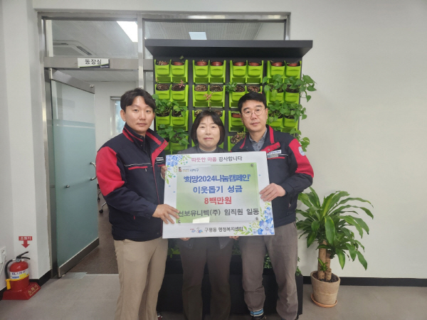 ¼±º¸À¯´ÏÅØ(ÁÖ)Àº ¸Å³â ¿¬¸» ±¸Æòµ¿ ÇàÁ¤º¹Áö¼¾ÅÍ¿¡ ¾î·Á¿î ÀÌ¿ôÀ» À§ÇÑ ¼º±ÝÀ» ±âºÎÇÏ´Â µî µû¶æÇÑ ³ª´® Ȱµ¿À» Áö¼ÓÀûÀ¸·Î ±â¿©ÇØ Áö¿ª»çȸ ¹ßÀü¿¡ Èû¾²°í ÀÖ´Ù.