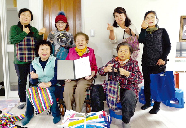 °á¼º Ãʱâ´Â 50¿© ¸íÀÌ È°µ¿ÇßÀ¸³ª ÇöÀç´Â °Ç°»ó ÀÌÀ¯·Î 10¿© ¸íÀÌ Âü¿©ÇÑ´Ù. ÇҸӴϵéÀÇ ºÀ»çȰµ¿Àº Ãѹ« ±èÁ¾Àº ÇÒ¸Ó´Ï(63)°¡ Áö¿ªÀ» ´Ù´Ï¸ç ÆóÇö¼ö¸·À» ¼ö°ÅÇÏ¸é ´Ü¿øµéÀÌ °¡À§¿Í ÀçºÀƲ·Î Àå¹Ù±¸´Ï¿Í °¡¹æÀ» ¸¸µç´Ù. ÇҸӴϵéÀº Áö³ÇØ ¸¶»êÇÕÆ÷±¸ ¹®Èµ¿ ź¼ÒÁ߸³¸¸µé±â ÃßÁøÀ§¿øÈ¸¿Í ÇÔ²² 350°³ÀÇ Àå¹Ù±¸´Ï¸¦ ¸¸µé¾î Áö¿ª¹Î¿¡°Ô ³ª´²ÁÖ°í Æó°ÇÀüÁö º¸»ó ±³È¯ Ȱµ¿ µî ź¼ÒÁ߸³ ½Çõ Ä·ÆäÀο¡ ¾ÕÀ弱⵵ Çß´Ù. ¶Ç Çå ¿ÊÀ» ¸ð¾Æ ±ú²ýÀÌ ¼¼Å¹ÇÑ ÈÄ, »õ ¿Ê°¨À» ´õÇØ ÀçºÀƲ·Î Á÷Á¢ ¼ö¼±¡¤Á¦ÀÛÇÑ ¸®Æû ¿ÊÀ» Àú¼Òµæ ³ëÀεéÀ» À§ÇØ ±âºÎÇϱ⵵ Çß´Ù.