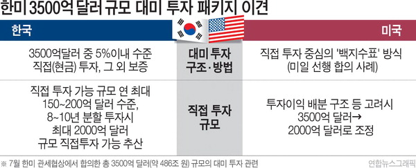 ¾ÖÃÊ Çѱ¹Àº 3500¾ï ´Þ·¯ Áß 5% À̳» ¼öÁØ¿¡¼¸¸ Á÷Á¢ ÅõÀÚ¸¦ ÇÏ°í ³ª¸ÓÁö ´ëºÎºÐÀ» º¸ÁõÀ¸·Î ä¿ì·Á°í Çß´Ù ±×·¯³ª ¹Ì±¹Àº ÀϺ»°úÀÇ ¼±Çà ÇÕÀÇ »ç·Êó·³ Á÷Á¢ ÅõÀÚ Áß½ÉÀÇ ¡®¹éÁö¼öÇ¥¡¯ ¹æ½ÄÀ» ¿ä±¸ÇØ Çù»óÀÌ ±³Âø »óÅ¿¡ ºüÁ³´Ù. ÀÌ¿¡ ÇÑ¹Ì Á¤ºÎ´Â ÃÖ±Ù °¢·á±Þ Çù»óÀ» ÀÕµû¶ó ¿¾î ÀÇ°ß Á¢±ÙÀ» ½ÃµµÇß´Ù.