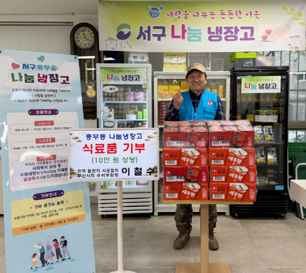 ºÎ»ê ÀÌö¼ö ¿°ü¸®½Ã°øÇùȸ ºÎ»ê½Ãȸ ¼ö¼®ºÎȸÀåÀº Áö³ 27ÀÏ Ãæ¹«µ¿ ³ª´®³ÃÀå°í¿¡ 10¸¸ ¿ø »ó´çÀÇ ½Ä·áǰÀ» ±âºÎÇß´Ù.