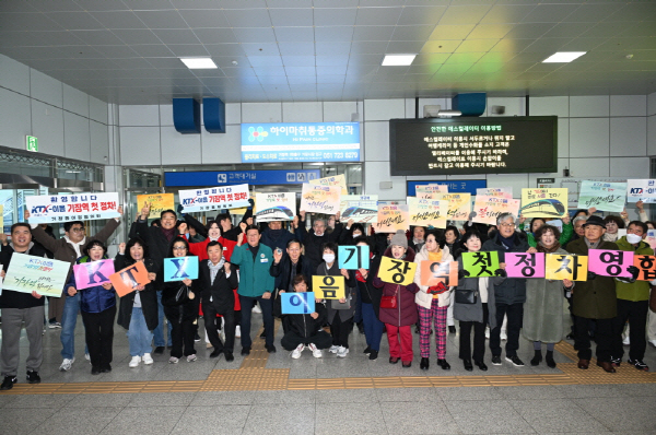 À̳¯ ±âÀ忪¿¡´Â Áö¿ª ÁֹδÜüÀÇ °øµ¿ ÁÖ°üÀ¸·Î, KTX-ÀÌÀ½ ¿­Â÷ÀÇ ¿ª»çÀûÀΠù Á¤Â÷¸¦ ÃàÇÏÇϴ ȯ¿µÇà»ç°¡ ¿­·È´Ù. ÁֹεéÀº ±âÀ忪 ½Â°­Àå¿¡ ¸ð¿© ȯ¿µÇÇÄÏÀ» µé°í, Ãâ¹ßÇÏ´Â KTX-ÀÌÀ½ ¿­Â÷¸¦ ÇâÇØ ¼ÕÀ» Èçµé¸ç ù Á¤Â÷ÀÇ ±â»ÝÀ» ÇÔ²² ³ª´³´Ù. Âü¿©ÇÑ ÁֹεéÀ» ¡°À̹ø KTX-ÀÌÀ½ ±âÀ忪 Á¤Â÷´Â ±âÀ屺¹Î ´ÜÇÕÀÇ °á°ú¹°ÀÌÀÚ, Áö¿ª¹ßÀüÀÇ »õ·Î¿î ÀÌÁ¤Ç¥¸¦ ¾´ »ç·ÊÀÌ´Ù¡±¶ó°í ÀÔÀ» ¸ð¾Ò´Ù.