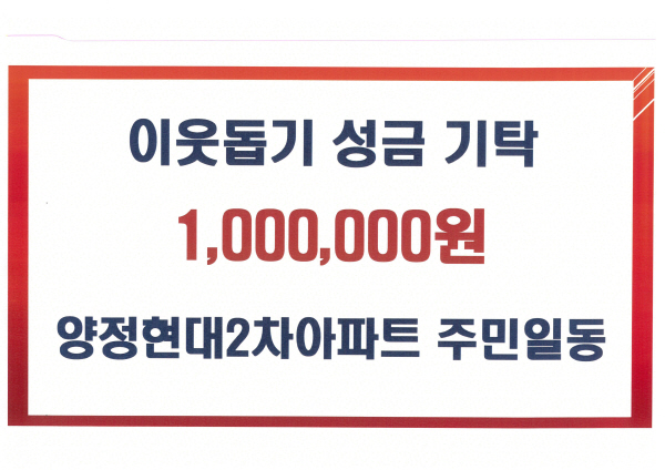 ºÎ»êÁø±¸ ¾çÁ¤Çö´ë2Â÷¾ÆÆÄÆ® ÀÔÁֹεéÀº Áö³ 12ÀÏ, Èñ¸Á2026 ³ª´®Ä·ÆäÀο¡ µ¿ÂüÇϰíÀÚ ¾çÁ¤1µ¿Áֹμ¾ÅÍ(µ¿Àå ¿À¸í¿Á)¿¡ ¼º±Ý 100¸¸¿øÀ» ±âŹÇß´Ù.