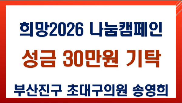 ¼Û¿µÈñ Àü ºÎ»êÁø±¸ ÃÊ´ë ±¸ÀÇ¿ø, °³±Ý3µ¿ Áֹμ¾ÅÍ¿¡ ÀÌ¿ôµ½±â ¼º±Ý 30¸¸ ¿ø ±âŹ