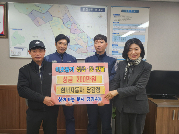 Çö´ëÀÚµ¿Â÷ ºí·çÇÚÁî ´ç°¨Á¡(´ëÇ¥ °ÈñÅÂ)Àº 1¿ù 23ÀÏ Áö¿ª ³» ¾î·Á¿î ÀÌ¿ôÀ» µ½±â À§ÇØ ´ç°¨4µ¿ Áֹμ¾ÅÍ(µ¿Àå À±¹Ì¼÷)¿¡ ¼º±Ý 200¸¸ ¿øÀ» ±âŹÇß´Ù.