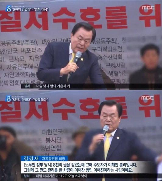 ±è°æÀç ȸÀåÀº Áö³ 19ÀÏ ¹Ú±ÙÇý ´ëÅë·É ÇÏ¾ß ¹Ý´ë Áýȸ¿¡¼ "³ë¹«Çö Àü ´ëÅë·ÉÀÌ »ï¼ºÀ¸·ÎºÎÅÍ 8õ¾ï, À̸í¹Ú Àü ´ëÅë·ÉÀÌ ¹Ì¼ÒÀç´ÜÀ¸·ÎºÎÅÍ 2Á¶¿øÀ» °È¾ú´Ù"¶ó°í ¹ß¾ðÇß´Ù. À̳¯ ±è°æÀç ÀÚÀ¯ÃÑ¿¬¸Í ȸÀåÀº "³ë¹«Çö Àü ´ëÅë·É ½ÃÀý µ·À» °ÈÀº »ç¶÷Àº ÀÌÇØÂù ÃѸ®ÀÇ Çü°ú ÀÌÇпµ Àü ÀÇ¿øÀε¥ ±â¼úÀ» ÁÁ°Ô ÇØ¼ ¾È °É¸° °Í"À̶ó°í ÁÖÀåÇϱ⵵ Çß´Ù. ¶Ç ±è ȸÀåÀº "¹Ú ´ëÅë·ÉÀÌ Àӱ⠸» ¹Ì¸£Àç´Ü µîÀ» ¸¸µç °Ç ÃæºÐÈ÷ ÀÖÀ» ¼ö Àִµ¥ °ü¸®ÀÚ°¡ À߸øÇÑ °Í"À̶ó°í ¸»Çß´Ù.
