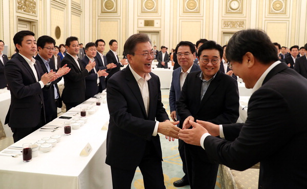 | ¹®ÀçÀÎ ´ëÅë·ÉÀÌ 26ÀÏ Ã»¿Í´ë ¿µºó°ü¿¡¼ ¿¸° ´õºÒ¾î¹ÎÁÖ´ç ±¹È¸ÀÇ¿ø ÃÊû ¿ÀÂù ¹× °£´ãȸ¿¡ ÀÔÀåÇϸç Âü¼® ÀÇ¿øµé°ú ÀλçÇϰí ÀÖ´Ù. ¿¬ÇÕ´º½º |