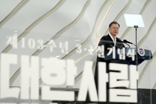 ¹® ´ëÅë·ÉÀº À̳¯ ¼¿ï ¼´ë¹®±¸ ±¹¸³´ëÇѹα¹ÀÓ½ÃÁ¤ºÎ±â³ä°ü¿¡¼ ¿¸° Á¦103ÁÖ³â 3¡¤1Àý ±â³ä½Ä¿¡ Âü¼®, ±â³ä»ç¸¦ ÅëÇØ ¡°Äڷγª À§±â ¼Ó¿¡ ±¹Á¦Áú¼°¡ ¿äµ¿Ä¡°í ÀÖ´Ù¡±¸é¼ À̰°ÀÌ ¹àÇû´Ù. ·¯½Ã¾ÆÀÇ ¿ìÅ©¶óÀ̳ª ħ°ø »çŸ¦ ¿ìȸÀûÀ¸·Î °Ü³É, »çÅÂÀÇ ÆòÈÀû ÇØ°áÀ» Ã˱¸ÇÏ´Â µ¿½Ã¿¡ Çѱ¹ ¿ª½Ã °´ë±¹ ³í¸®¿¡¼ ÀÚÀ¯·Î¿ï ¼ö ÀÖµµ·Ï ±¹·ÂÀ» ±æ·¯¾ß ÇÑ´Ù´Â Á¡À» °Á¶ÇÑ °ÍÀÌ´Ù. ¹® ´ëÅë·ÉÀº ¡°µ¶¸³¿îµ¿ÀÇ Á¤½ÅÀÌ ¿À´Ã ¿ì¸®¿¡°Ô ÁÖ´Â ±³ÈÆÀº °´ë±¹ Áß½ÉÀÇ ±¹Á¦Áú¼¿¡ ÈֵѸ®Áö ¾Ê°í ¿ì¸®ÀÇ ¿ª»ç¸¦ ¿ì¸®°¡ ÁÖµµÇØ °¥ ÈûÀ» °¡Á®¾ß ÇÑ´Ù´Â °Í¡±À̶ó°í °Åµì °Á¶Çß´Ù. ¹® ´ëÅë·ÉÀº ÀϺ»À» ÇâÇØ¼´Â ¿ª»ç¸¦ Á÷½ÃÇ϶ó°í °Á¶Çϸ鼵µ ¡°ÇÑÀÏ ¾ç±¹ÀÇ Çù·ÂÀº ¹Ì·¡¼¼´ë¸¦ À§ÇÑ Çö¼¼´ëÀÇ Ã¥¹«¡±¶ó°í Çù·Âµµ °Á¶ÇÏ¸é¼ ¡®´ëÀÏ ÅõÆ®·¢ ¿Ü±³¡¯ ±âÁ¶¸¦ °Åµì È®ÀÎÇß´Ù.