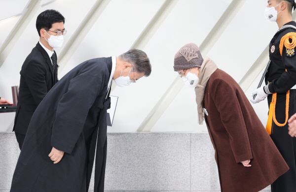 | ¹®ÀçÀÎ ´ëÅë·ÉÀÌ 1ÀÏ ¼¿ï ¼´ë¹®±¸ ±¹¸³ ´ëÇѹα¹ÀÓ½ÃÁ¤ºÎ ±â³ä°ü¿¡¼ ¿¸° Á¦103ÁÖ³â 3¡¤1Àý ±â³ä½Ä¿¡¼ °Ç±¹ÈÆÀå ¾ÖÁ·ÀåÀ» ¼ö¿©ÇÏ¸é¼ À¯Á·¿¡°Ô ¸Ó¸® ¼÷¿© ÀλçÇϰí ÀÖ´Ù. 2022.3.1